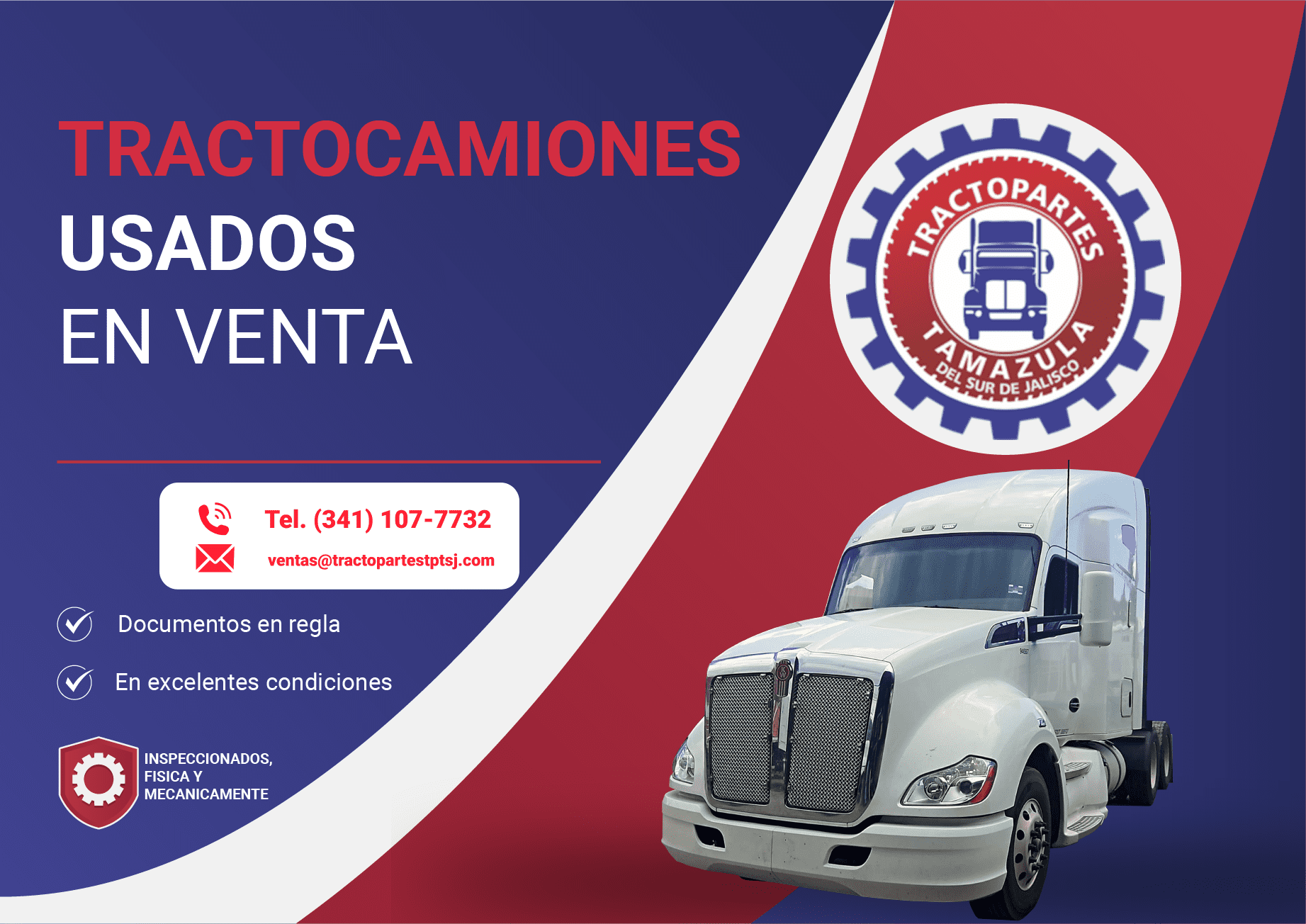 Tractocamiones usados seguros: ¡Documentos en regla con todos sus consecutivos de las facturas! Todos los camiones son financiados. Nuestros tractocamiones son inspeccionados física y mecánicamente por un equipo de expertos para garantizar su seguridad. Ofrecemos una garantía de más 15 años de servicio a nuestros clientes para tu tranquilidad.